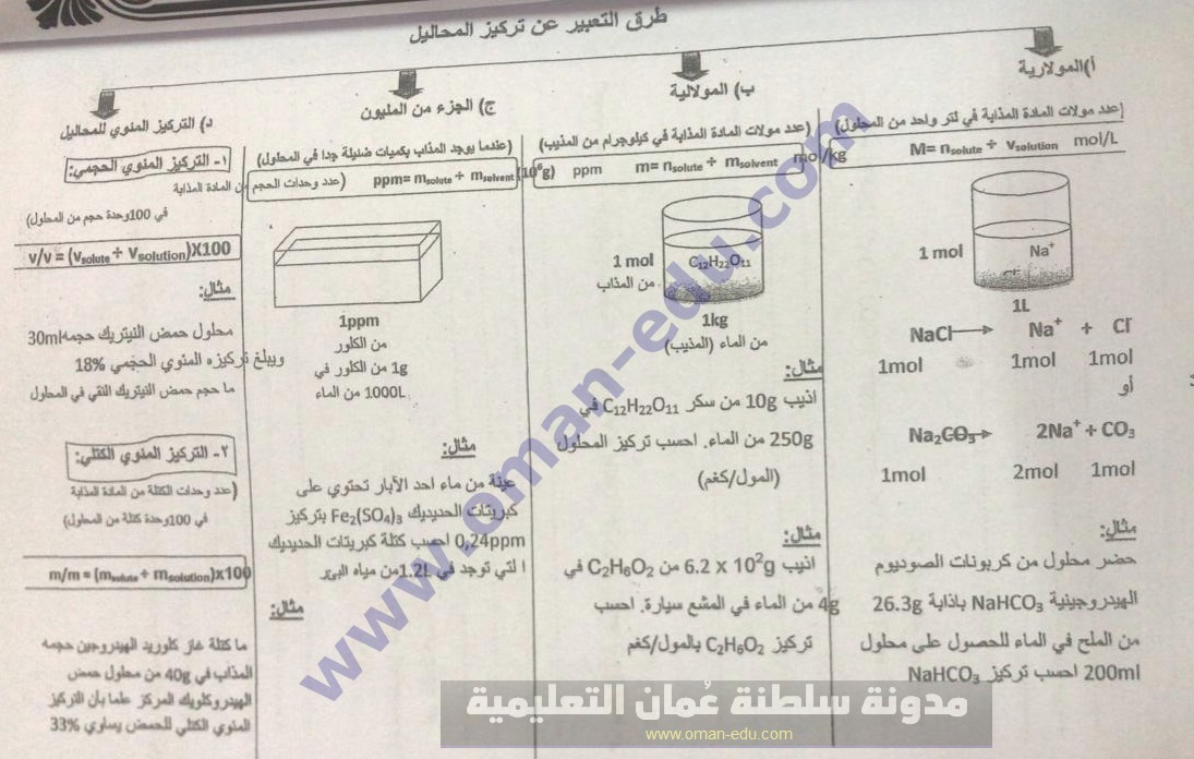 مخطط ملخص طرق التعبير عن تركيز المحاليل