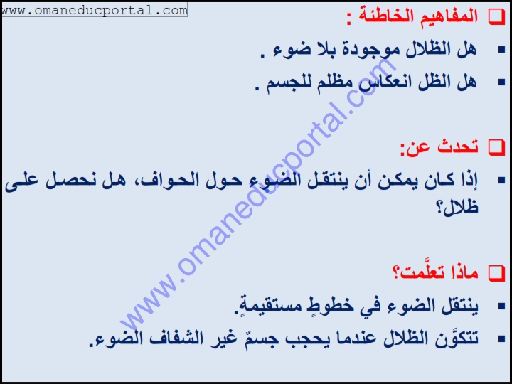 ملخص وحل انشطة درس انتقال الضوء في خطوط في خطوط مستقيمة في العلوم