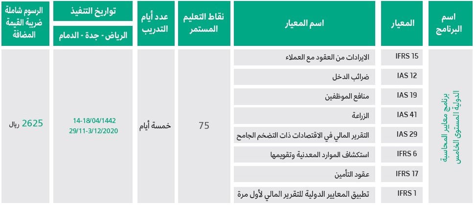 الهيئة السعودية للمحاسبين القانونيين الجداول التدريبية