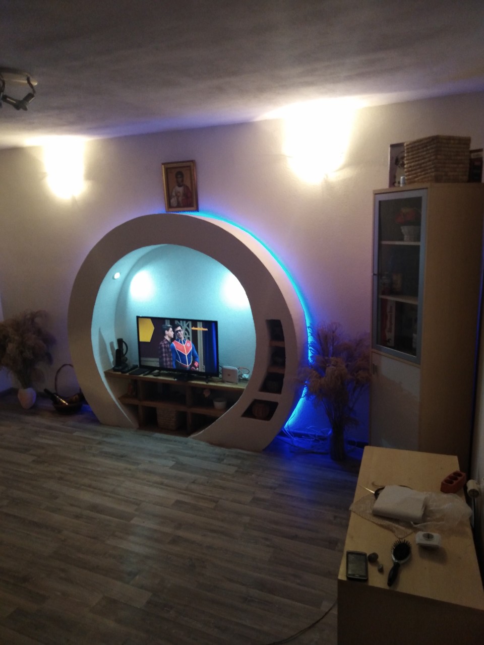 Estetsko Dotjerivanje Tv Komode Sa Rigipsom Svjetlo Plavo Svjetlo